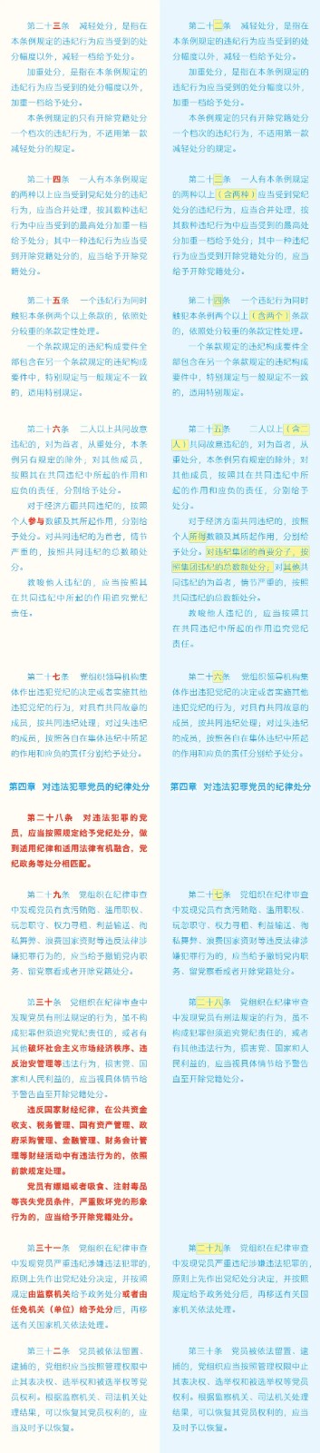 《中國共產(chǎn)黨紀(jì)律處分條例》修訂條文對照表 發(fā)表時(shí)間:2024-01-04